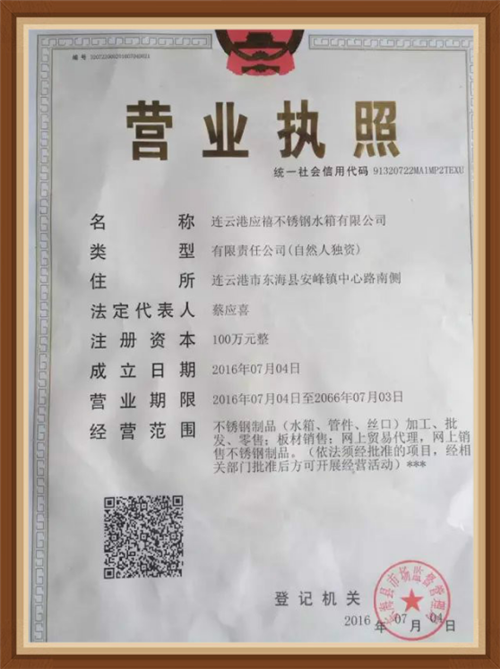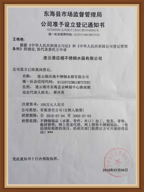 連云港應(yīng)禧不銹鋼水箱有限公司,地處江蘇省連云港市東??h安峰鎮(zhèn),是一家生產(chǎn)圓柱形、拼裝形不銹鋼生活水箱、工業(yè)水箱、消防水箱、聚氨酯整體發(fā)泡保溫水箱(與熱水工程、太陽(yáng)能熱水工程、熱泵熱水工程、鍋爐熱水工程等配套使用)、醫(yī)用專用不銹鋼水箱為主導(dǎo)的生產(chǎn)型企業(yè)。